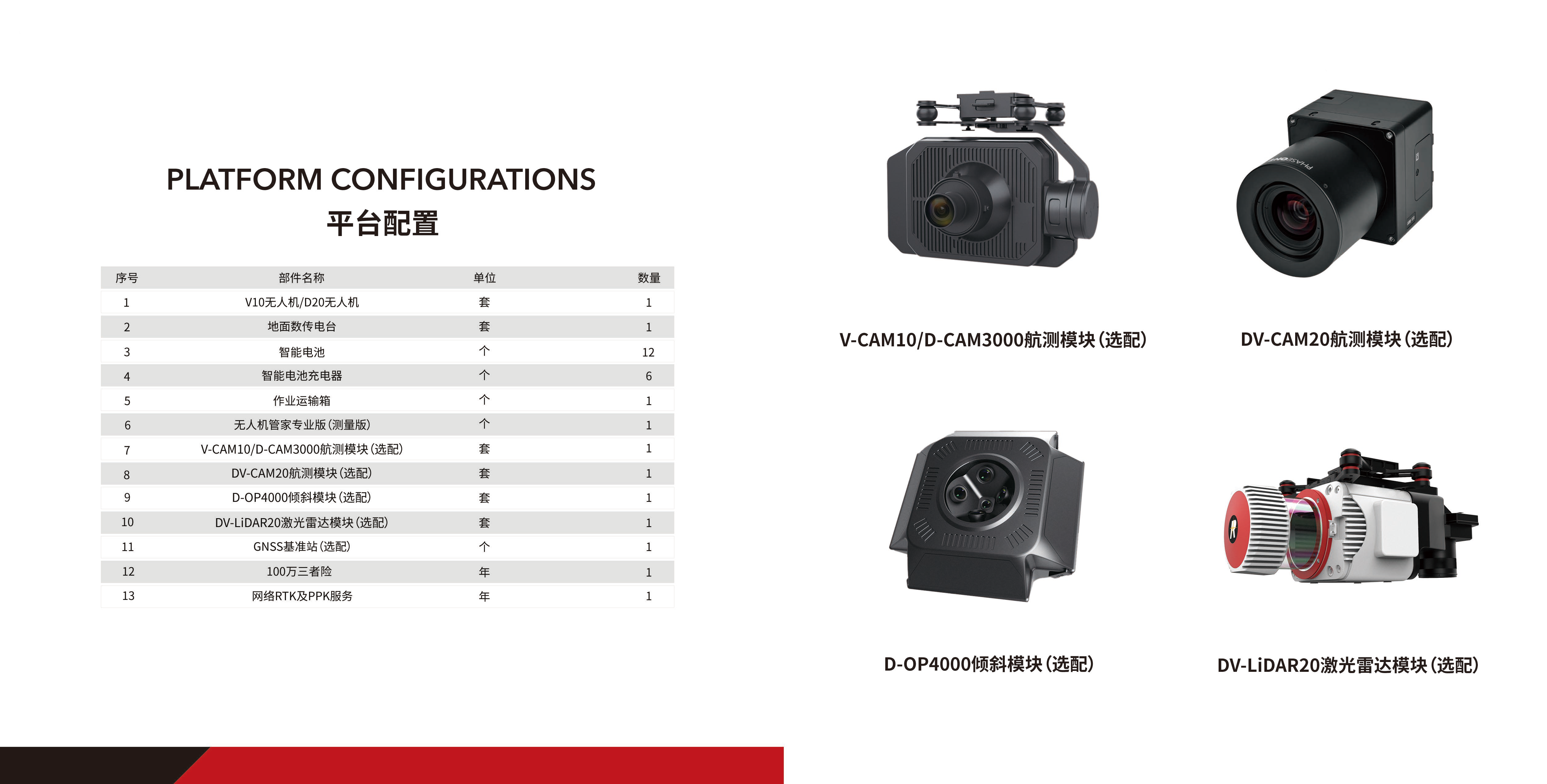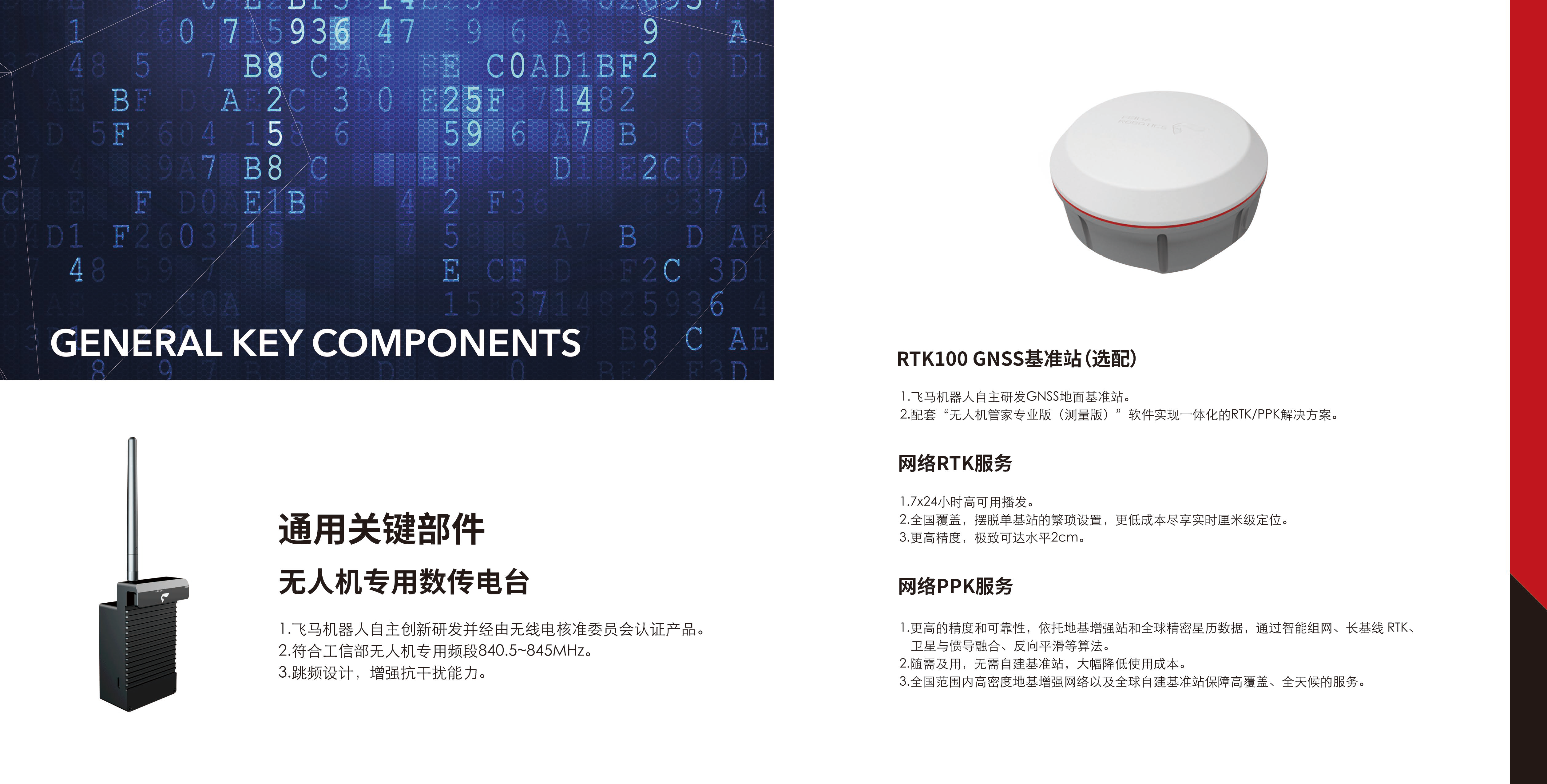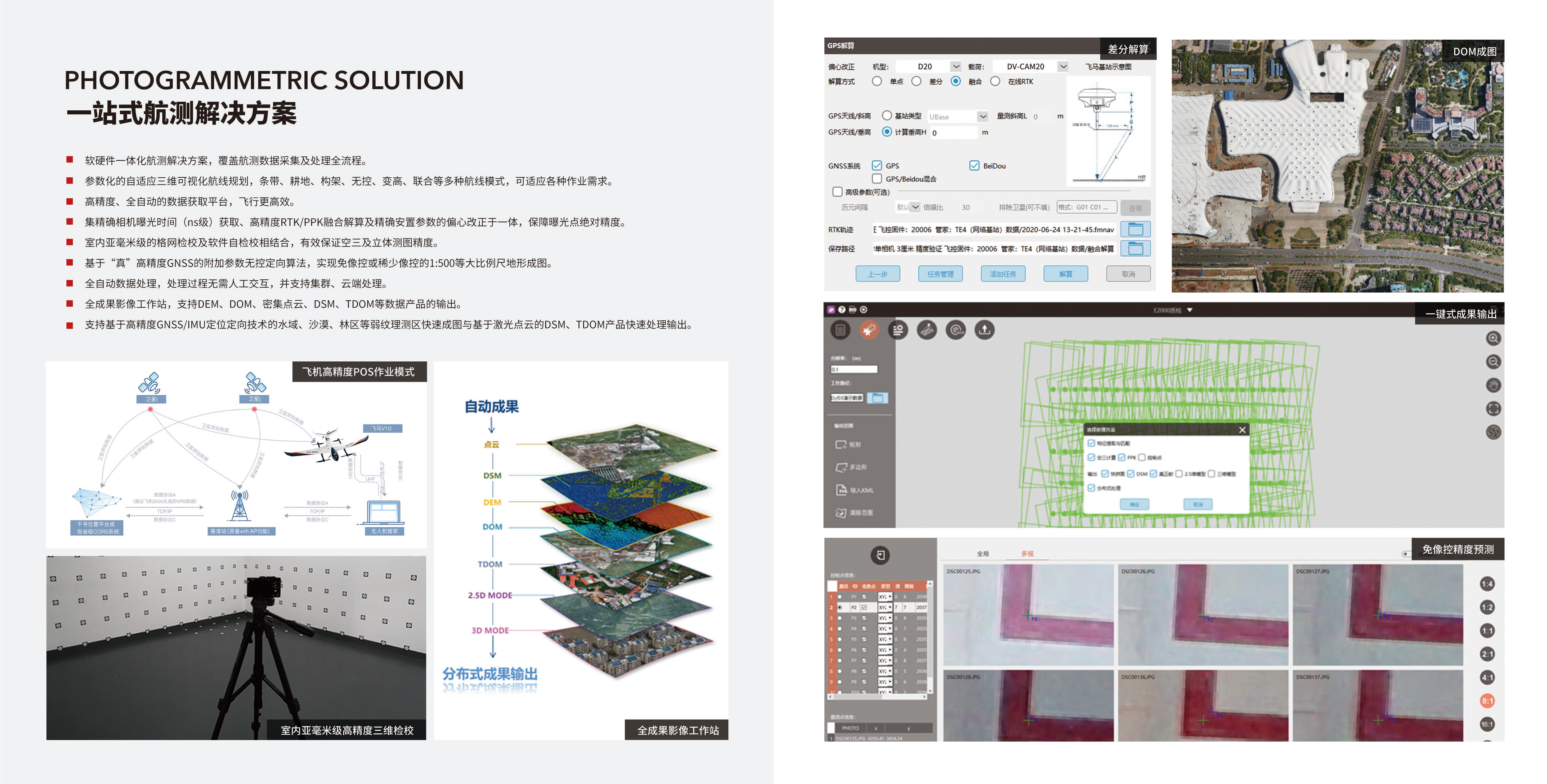 飛馬智能航測/遙感/偵察巡檢系統(tǒng)V10是飛馬機器人全新研發(fā)的大載重、長航時、多功能、高精度、高效率無人機系統(tǒng)—— V10為大載重垂直起降無人機系統(tǒng)。該款無人機系統(tǒng)主打“大載重、長航時”,延續(xù)飛馬機器人產(chǎn)品的工業(yè)化、模塊化設(shè)計,使用可通用的智能動力電池與高端載荷設(shè)備,可搭載可見光航測模塊、可見光傾斜模塊、可見光視頻模塊、熱紅外相機模塊、熱紅外視頻模塊、多光譜模塊、高光譜模塊、激光雷達模塊、合成孔徑雷達模塊以及部分組合模塊;均搭配高精度差分GNSS板卡,標(biāo)配網(wǎng)絡(luò)RTK/PPK及其融合解算服務(wù),支持高精度POS輔助空中三角測量,具備無控制點的1:500大比例尺成圖能力,實現(xiàn)免像控應(yīng)用;均配套“無人機管家專業(yè)版(測量版)”軟件,支持基于精準(zhǔn)三維地形、滿足各種應(yīng)用需求的智能航線與聯(lián)合航線規(guī)劃,具備精準(zhǔn)地形跟隨飛行與三維實時飛行監(jiān)控能力;支持GPS融合解算、控制點量測、空三解算、一鍵成圖、一鍵導(dǎo)出立體測圖、高精度組合導(dǎo)航軌跡解算、點云處理與分類等功能,提供DOM、DEM、DSM、TDOM、LAS點云等多種數(shù)據(jù)成果處理及瀏覽。