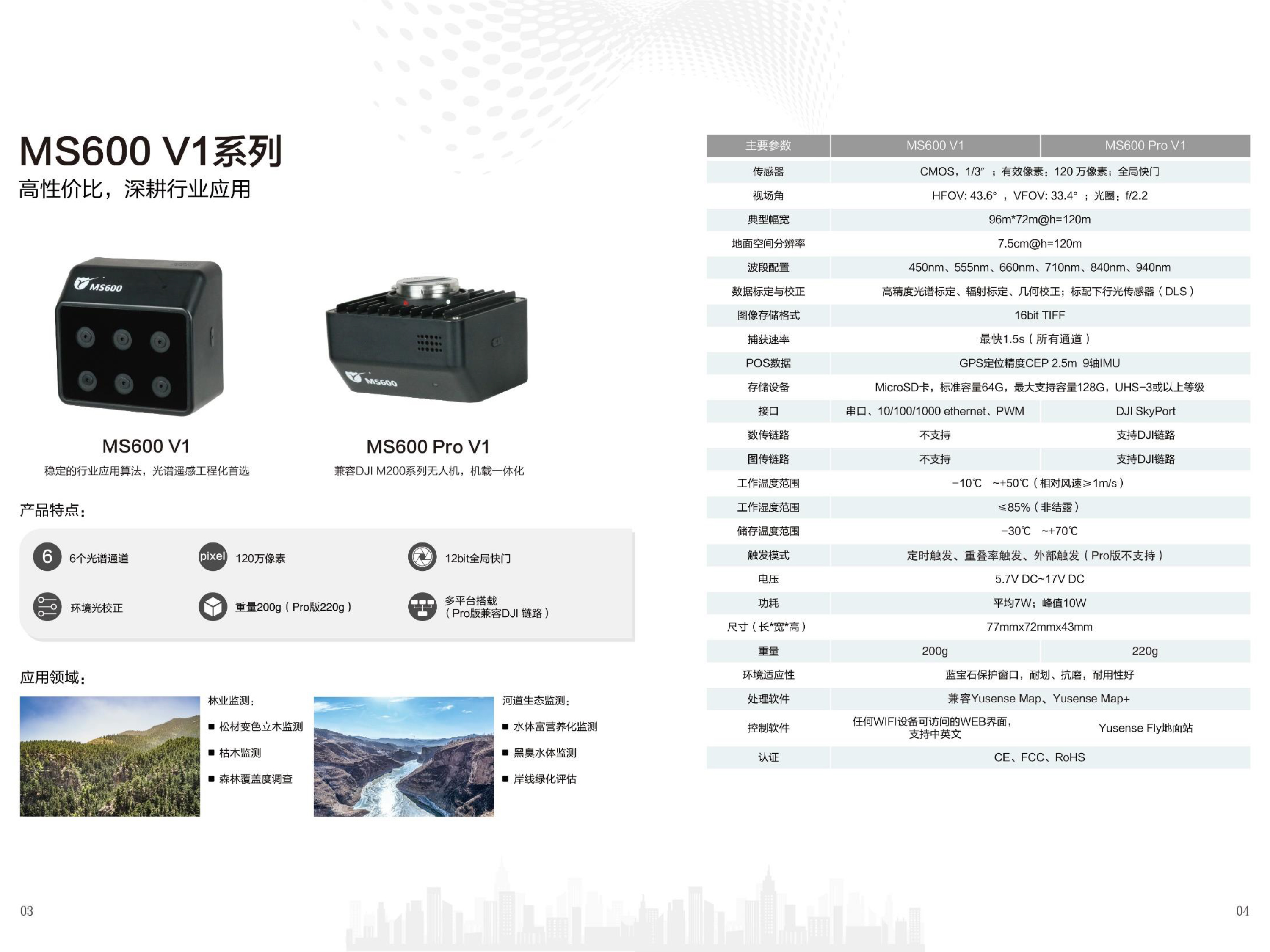 MS600系列6通道多光譜相機,各通道均采用1.2Mp高動態范圍全域快門CMOS探測器,400nm~900nm范圍內共17波段可供選擇,擁有多種波段配置方案,可根據用戶需求進行深度定制,產品整體指標國際先進、國內領先。