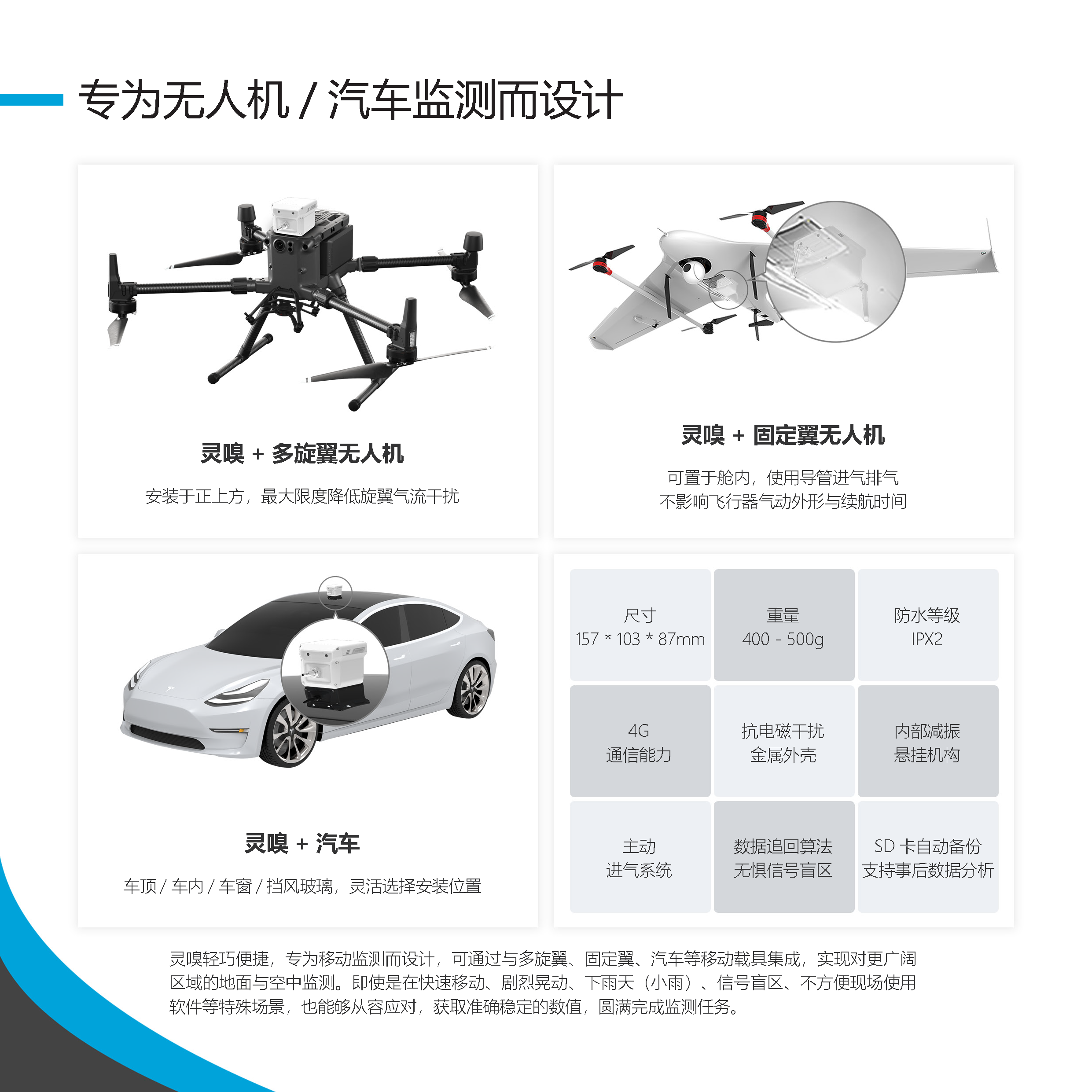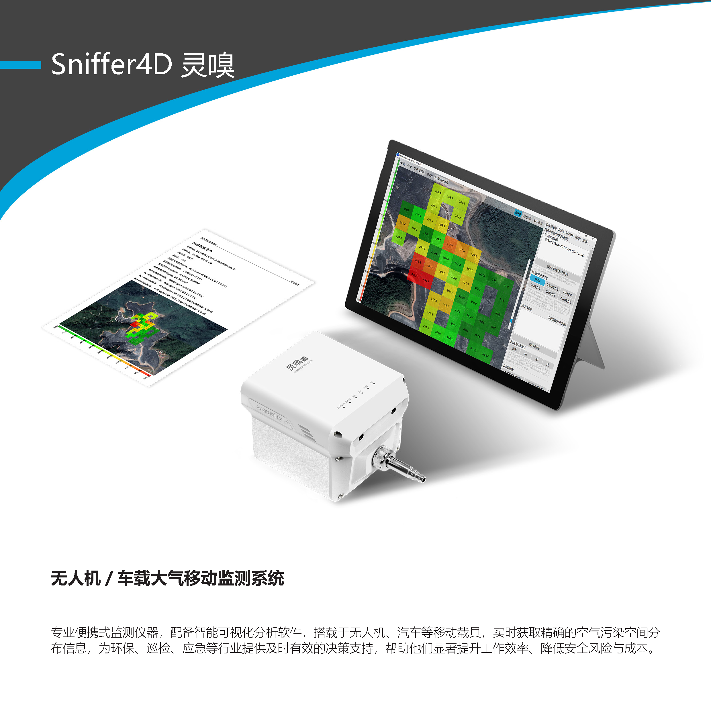 Sniffer4D 靈嗅 V2大氣移動監測系統可搭載于無人機、汽車或手持使用,采集精確的、帶有經緯度與時間標記的空氣污染數據,并實時傳輸至配套軟件進行智能可視化分析。